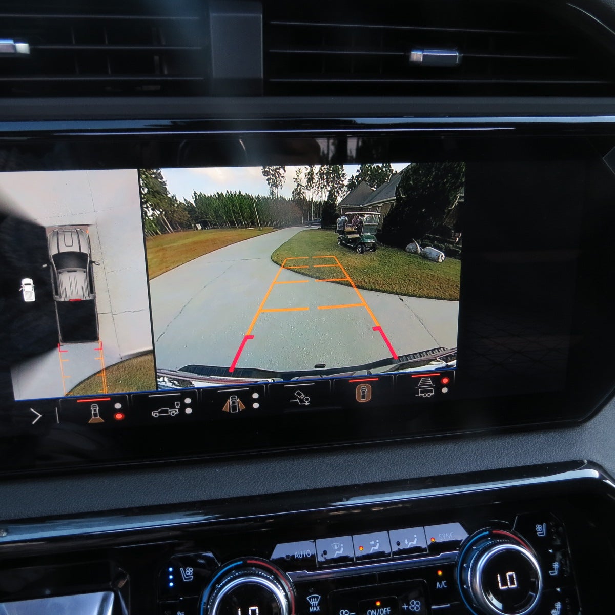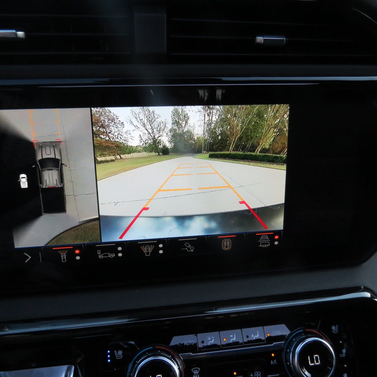 - Allows driver to see inside the cargo bed on the infotainment display to help with 5th wheel or gooseneck hitching and to check cargo
